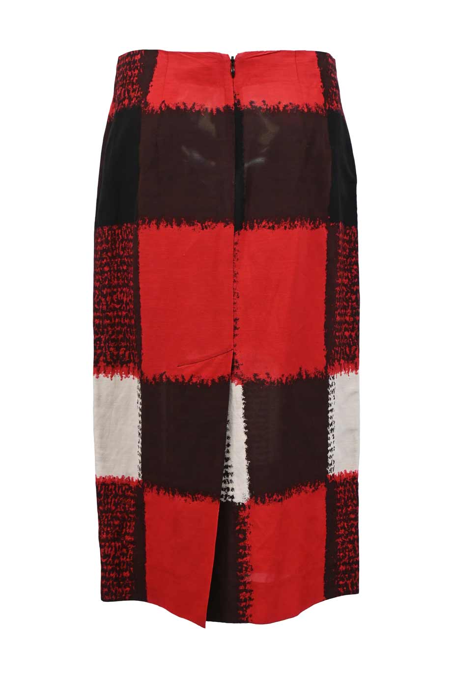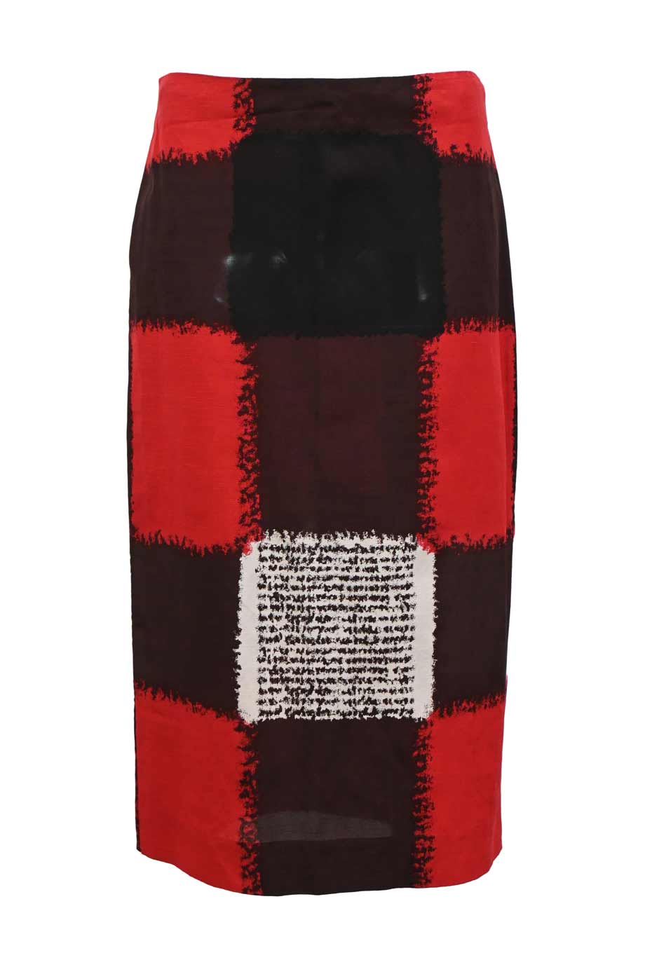Red and black wool-blend empire waist midi pencil skirt