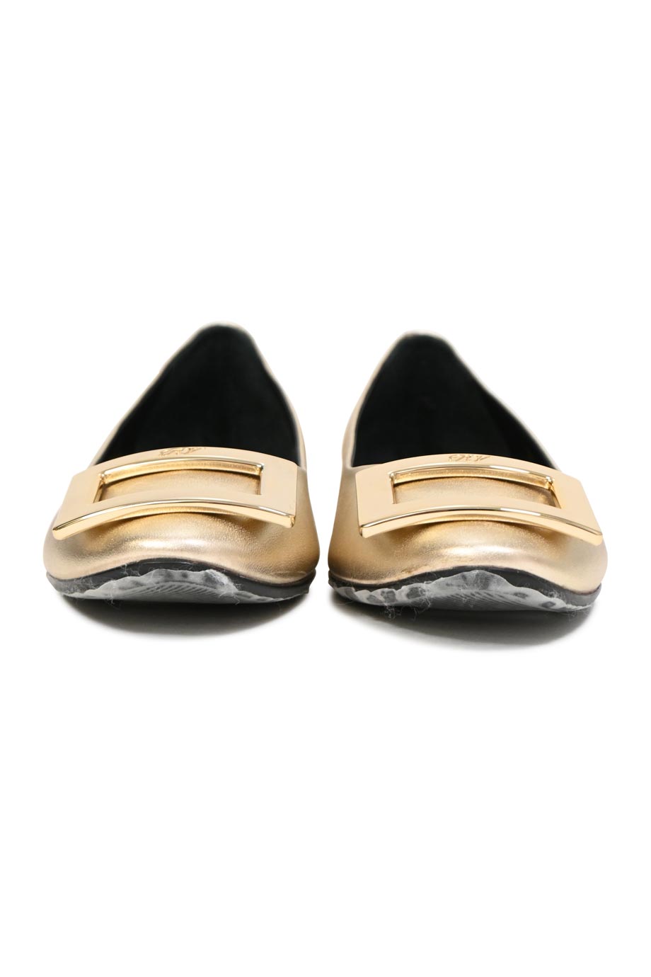 Champagne metallic fabric and leather pointed toe Hangisi ballerinas