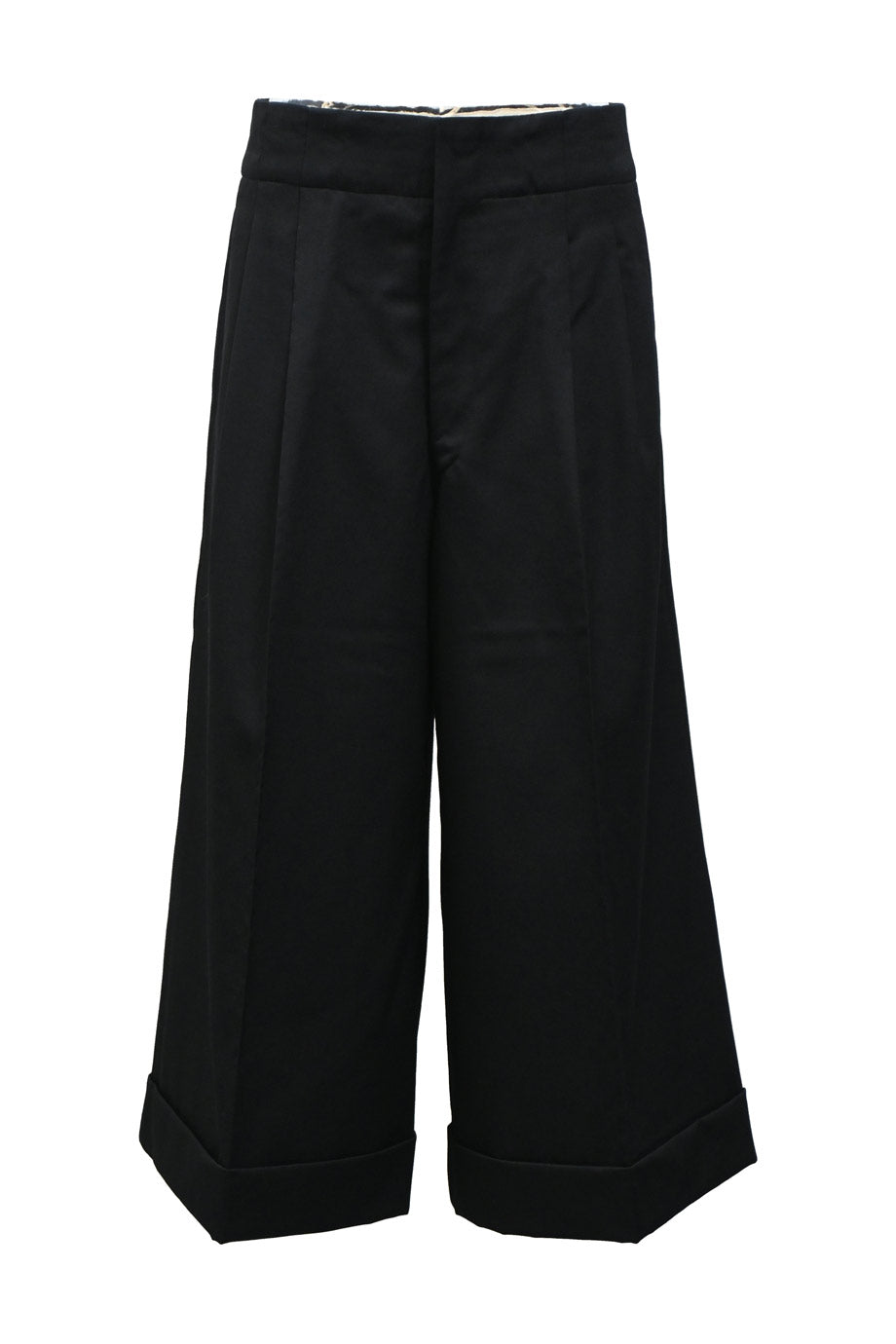 Charcoal boiled wool pull-on high-rise drop-crotch culottes