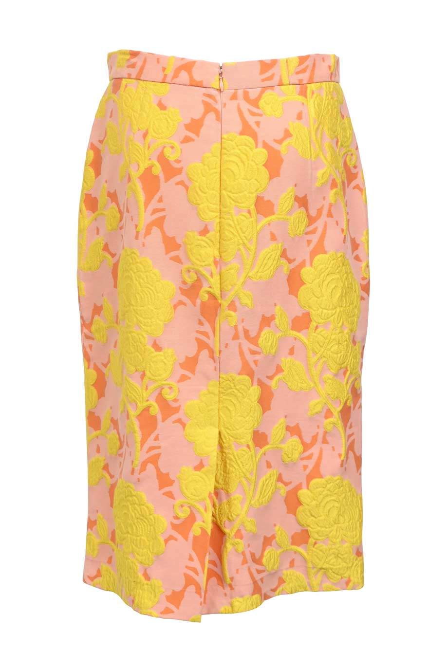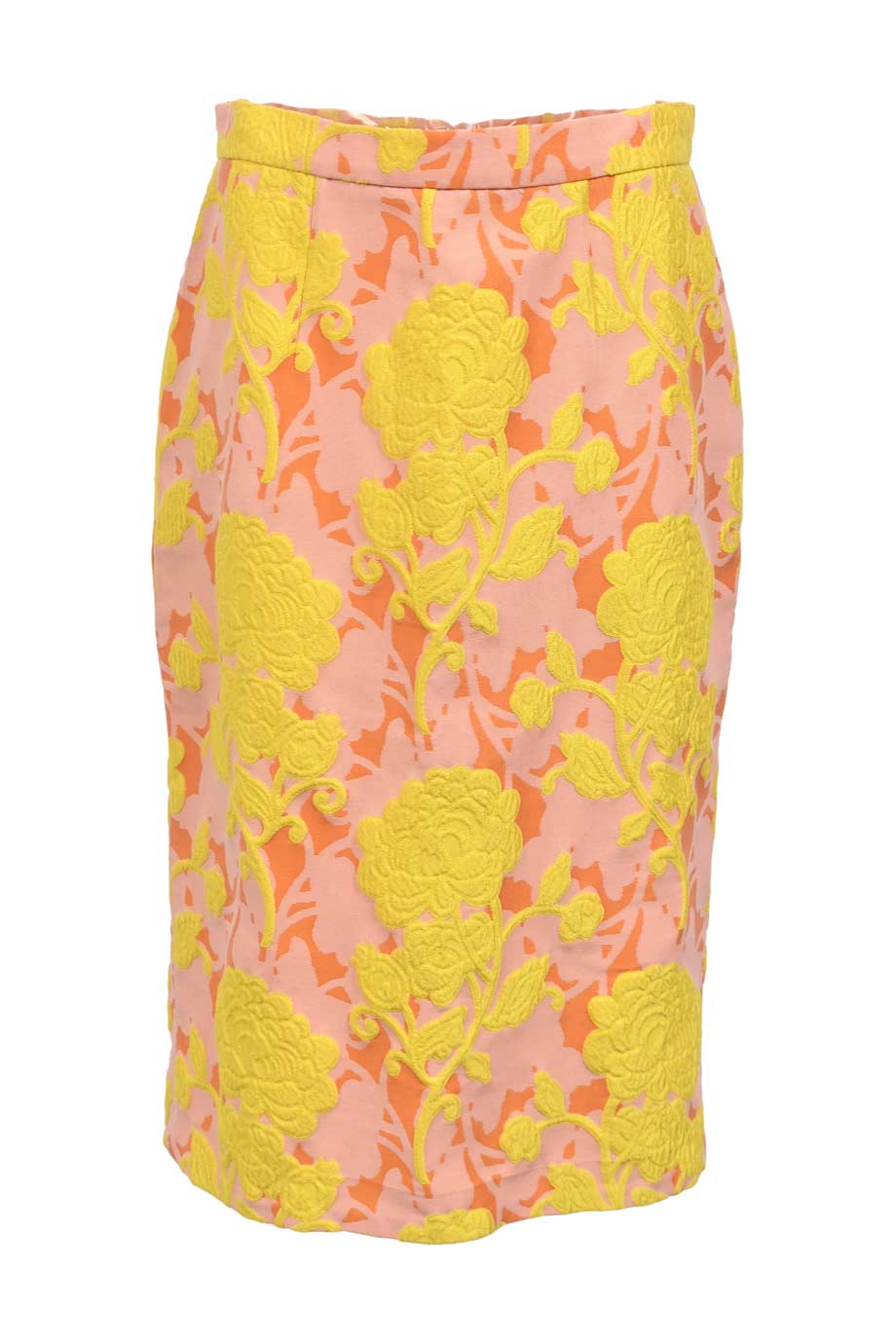 Orange and yellow cotton floral jacquard high-waisted pencil skirt