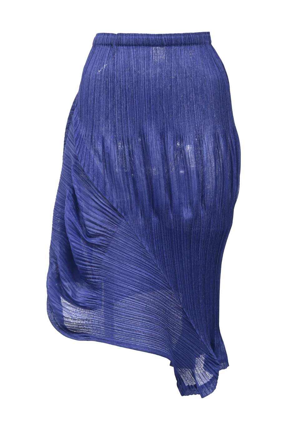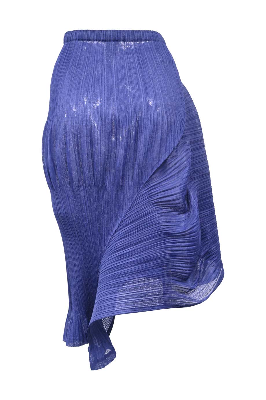Blue tie-dye cotton twill high-waisted pleated A-line midi skirt