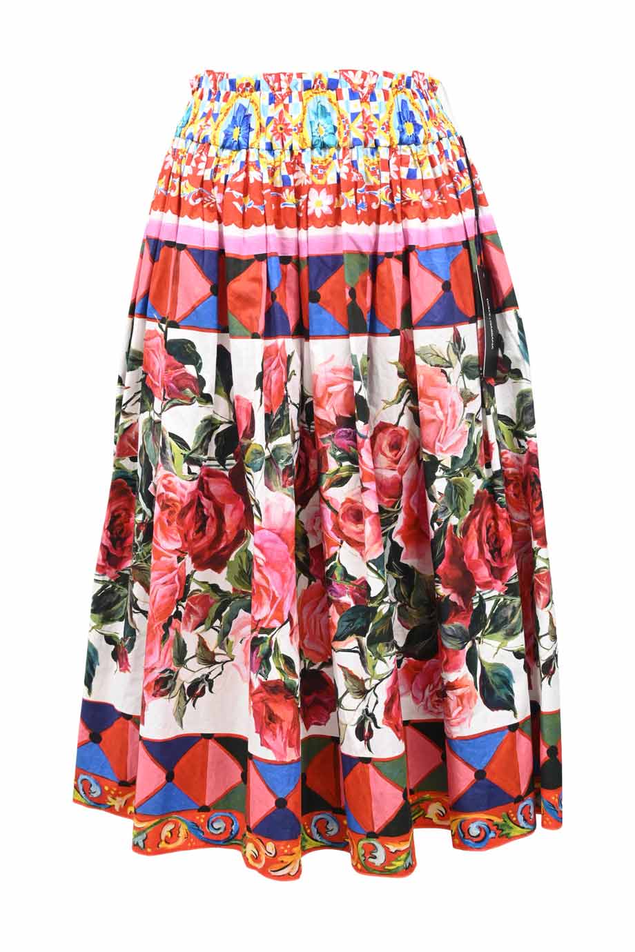 Multi-colour silk knife-pleat mini skirt featuring Barocco motif