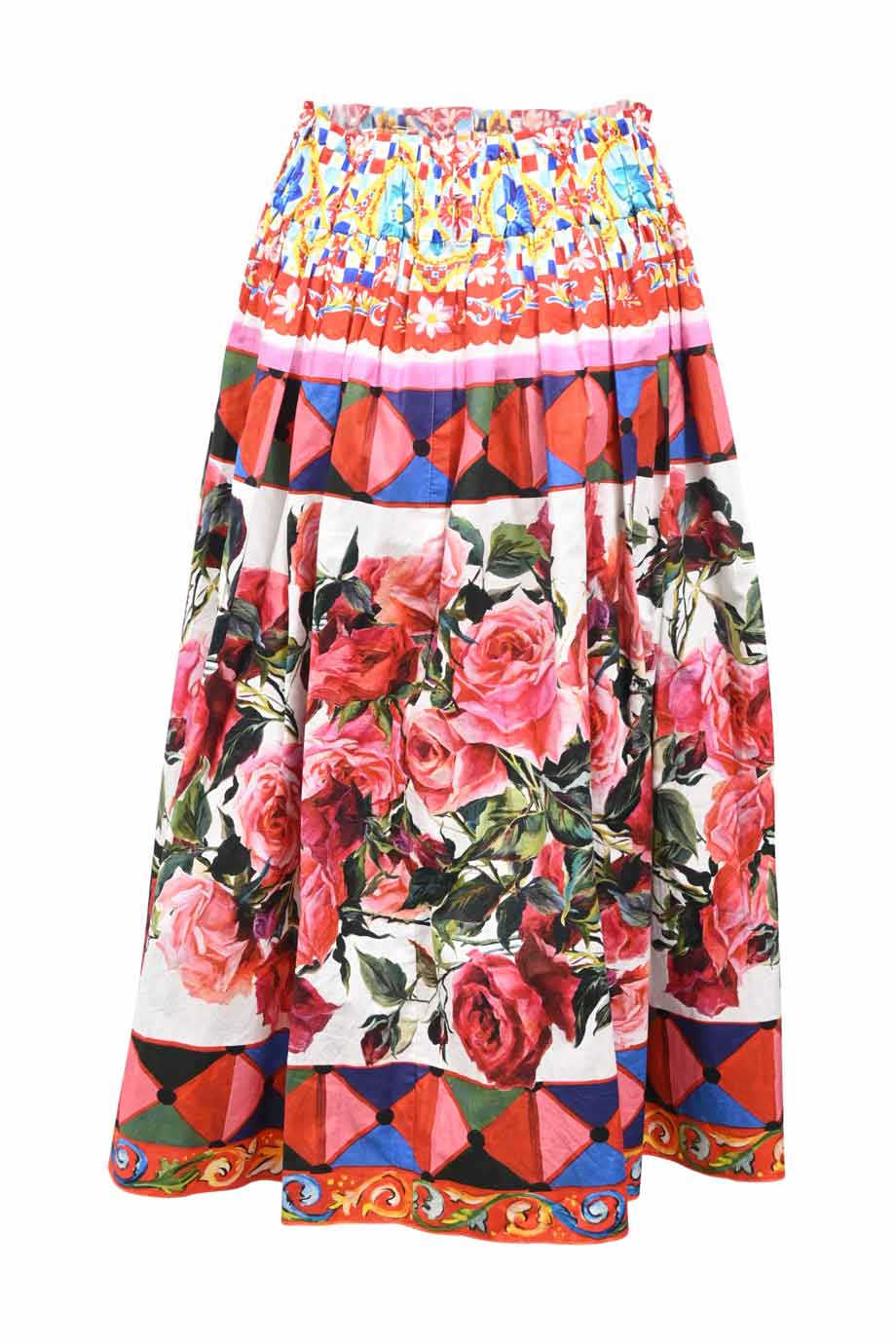Ivory printed silk crepe high-waisted floral pleated midi skirt