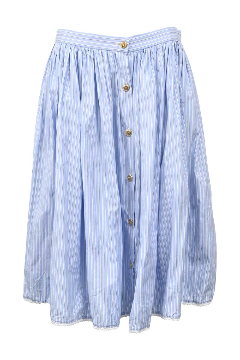 Light-wash indigo cotton chambray button-front tie-waist midi A-line skirt