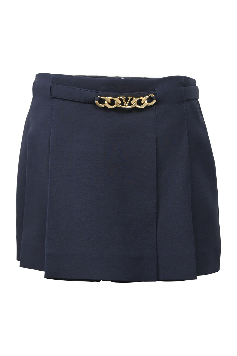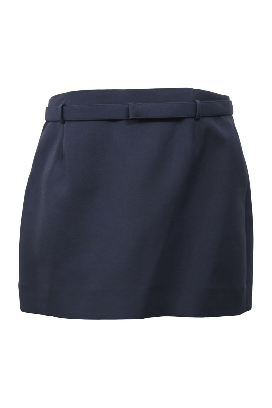 Navy blue wool-blend high-waisted mini skirt with godet inserts