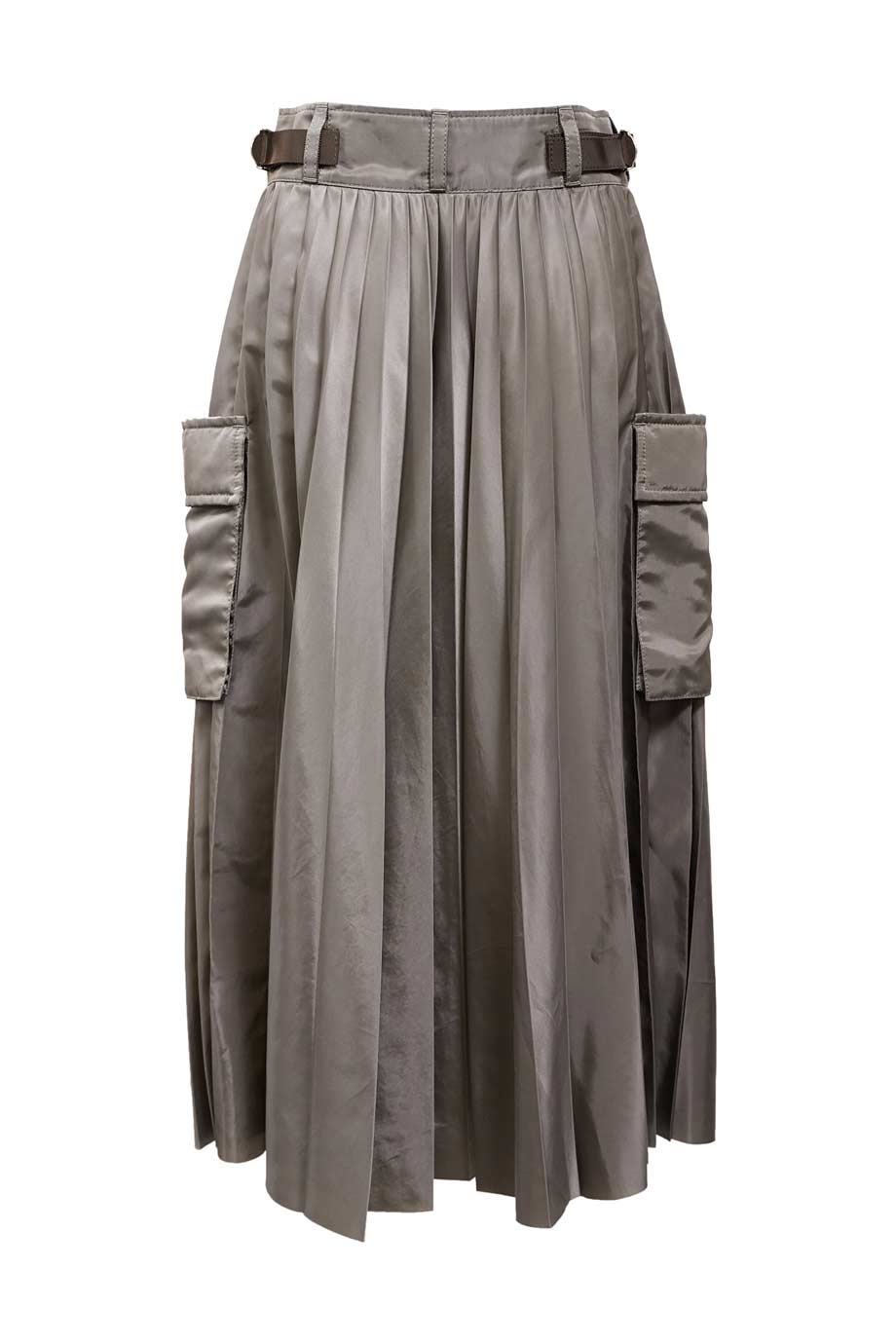 Grey mixed-media deconstructed high-waist knee length slit skirt with back double vents