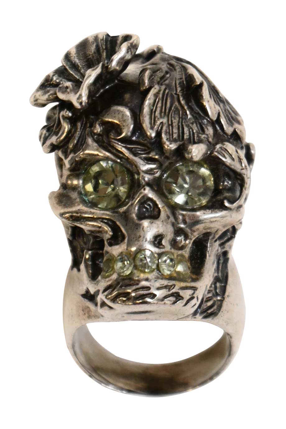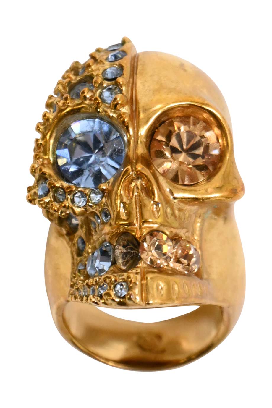Yellow crystal-embellished gunmetal stacked criss-cross ring