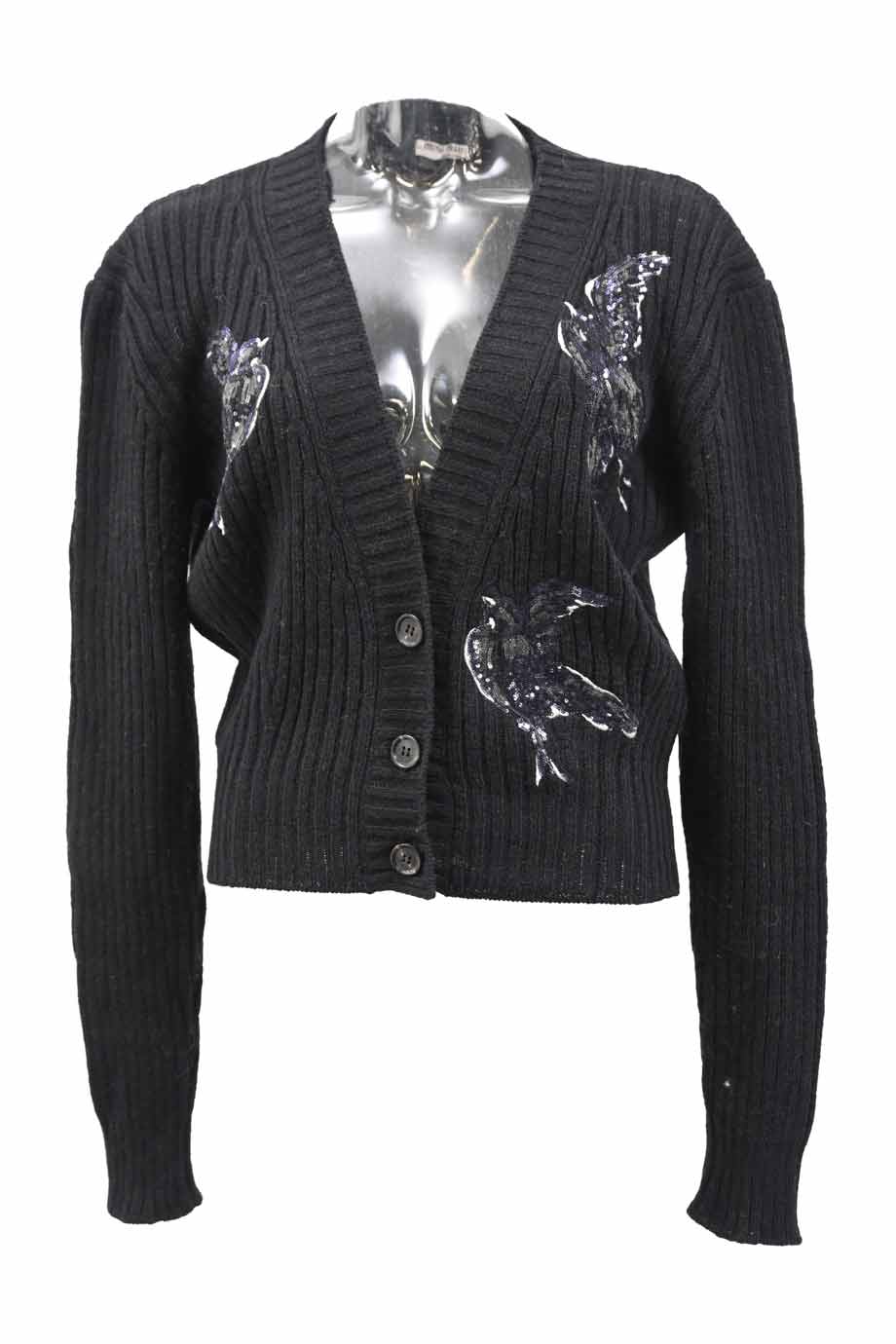 Purple jewelled cashmere knit round neck cardigan