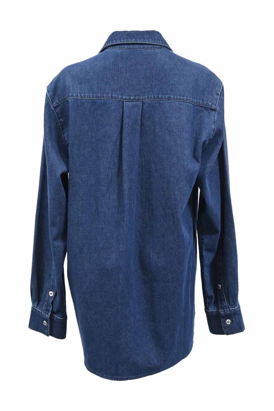 Blue cotton poplin point collar button-up shirt