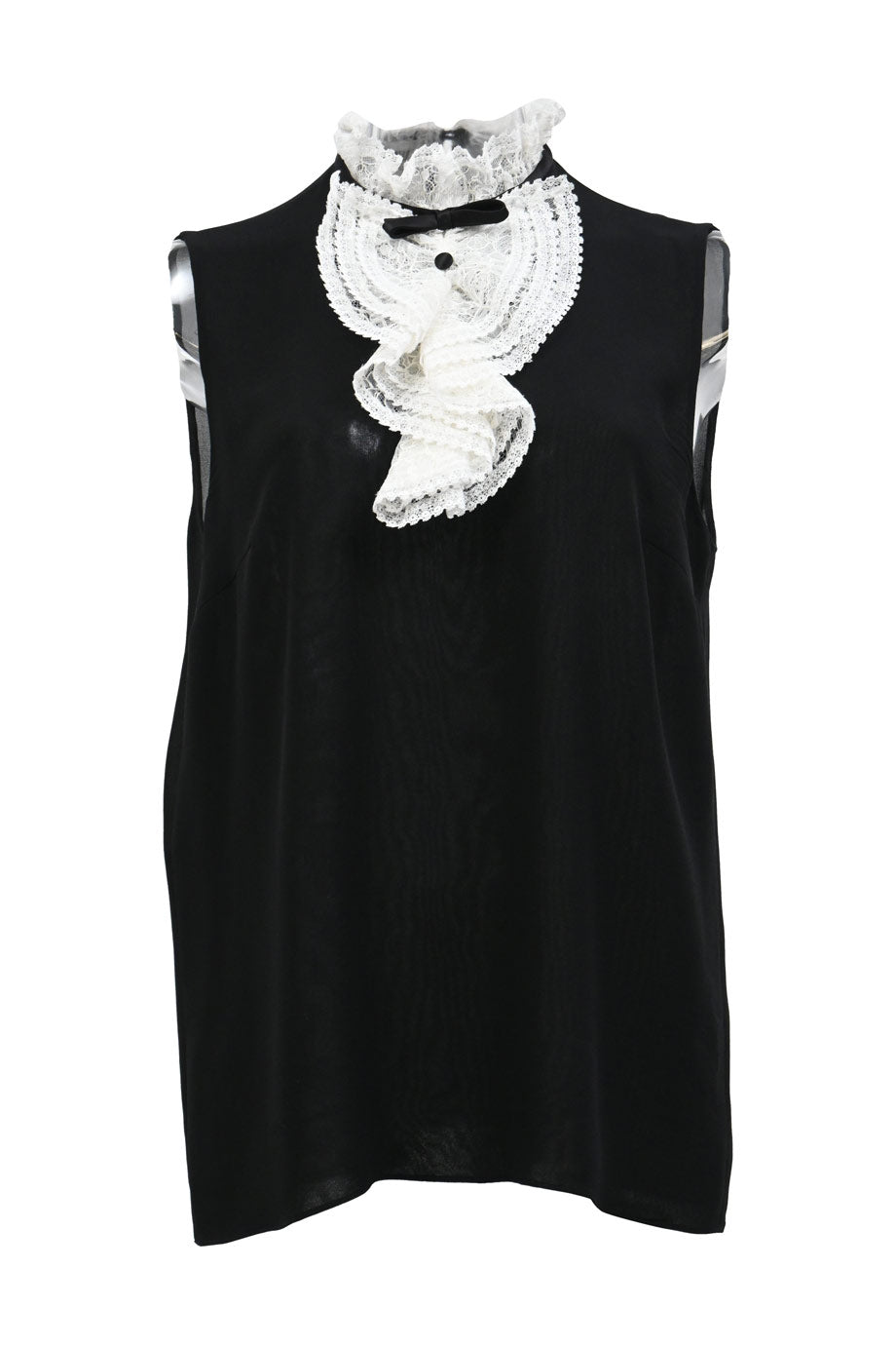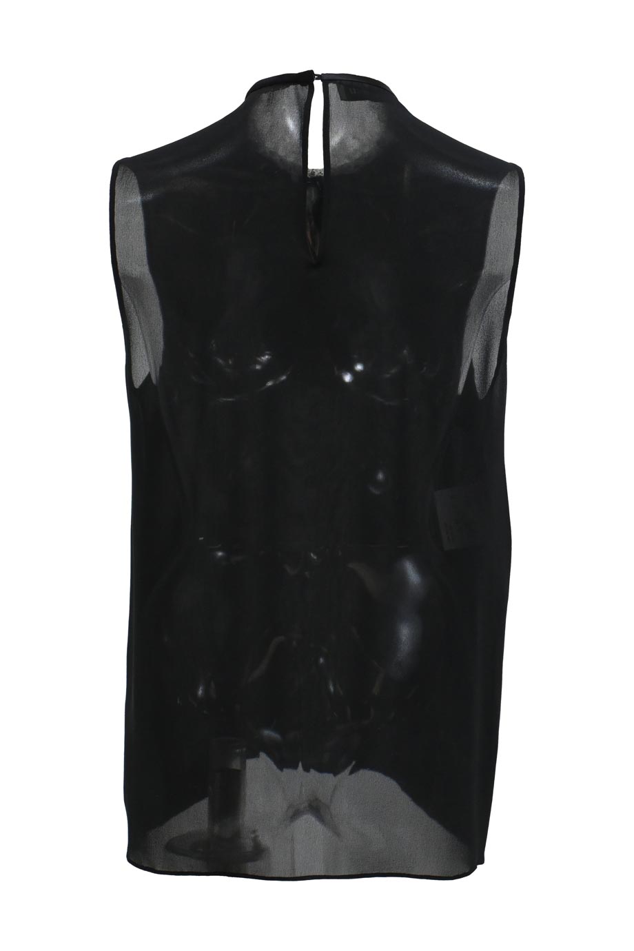 Black semi-sheer silk chiffon button-up shirt