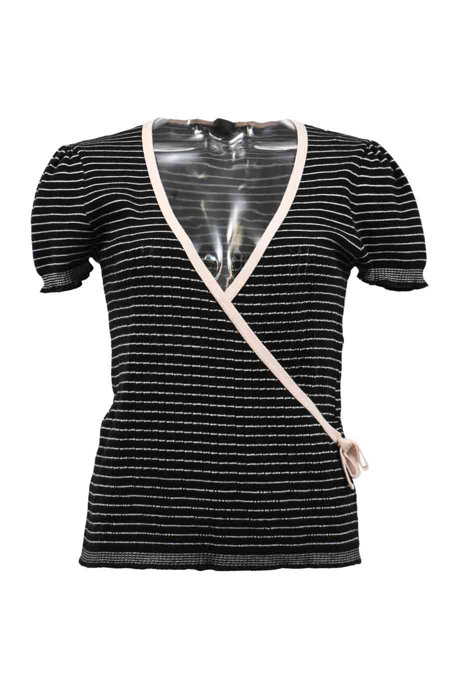 Black and tan silk-cotton blend striped dolman sleeve knit top