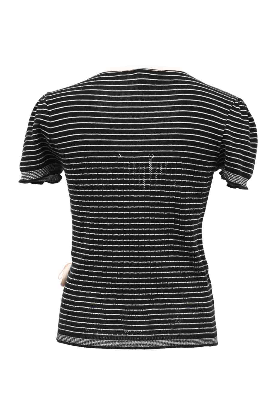 Black beaded bow-embellished silk crepe short sleeve blouse