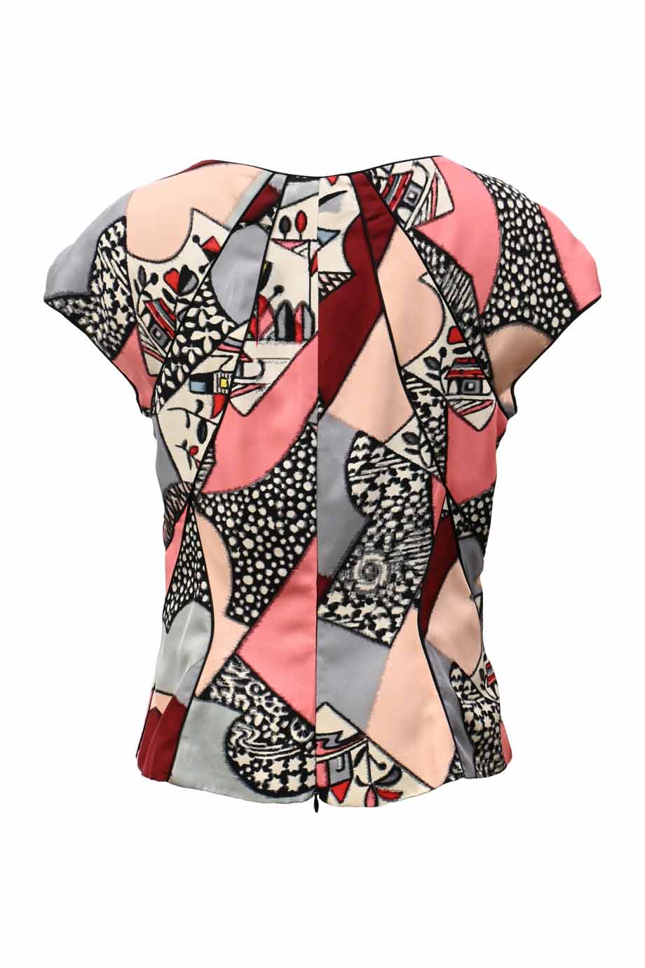 Fuchsia panelled silk satin round neck blouse