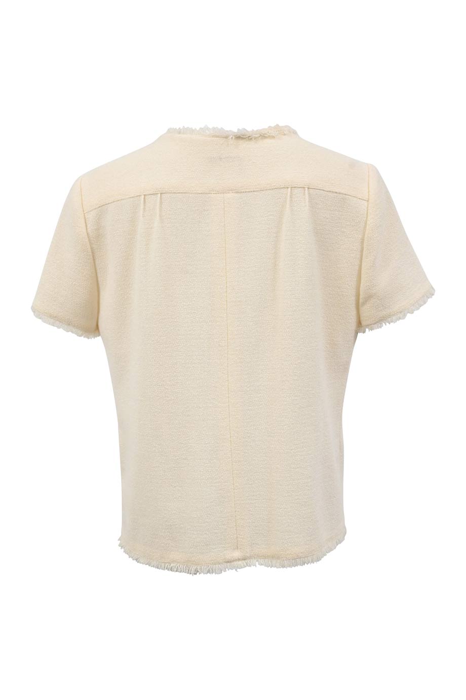 Gold and white viscose-blend metallic bouclé tweed quarter-zip sculpted crop top