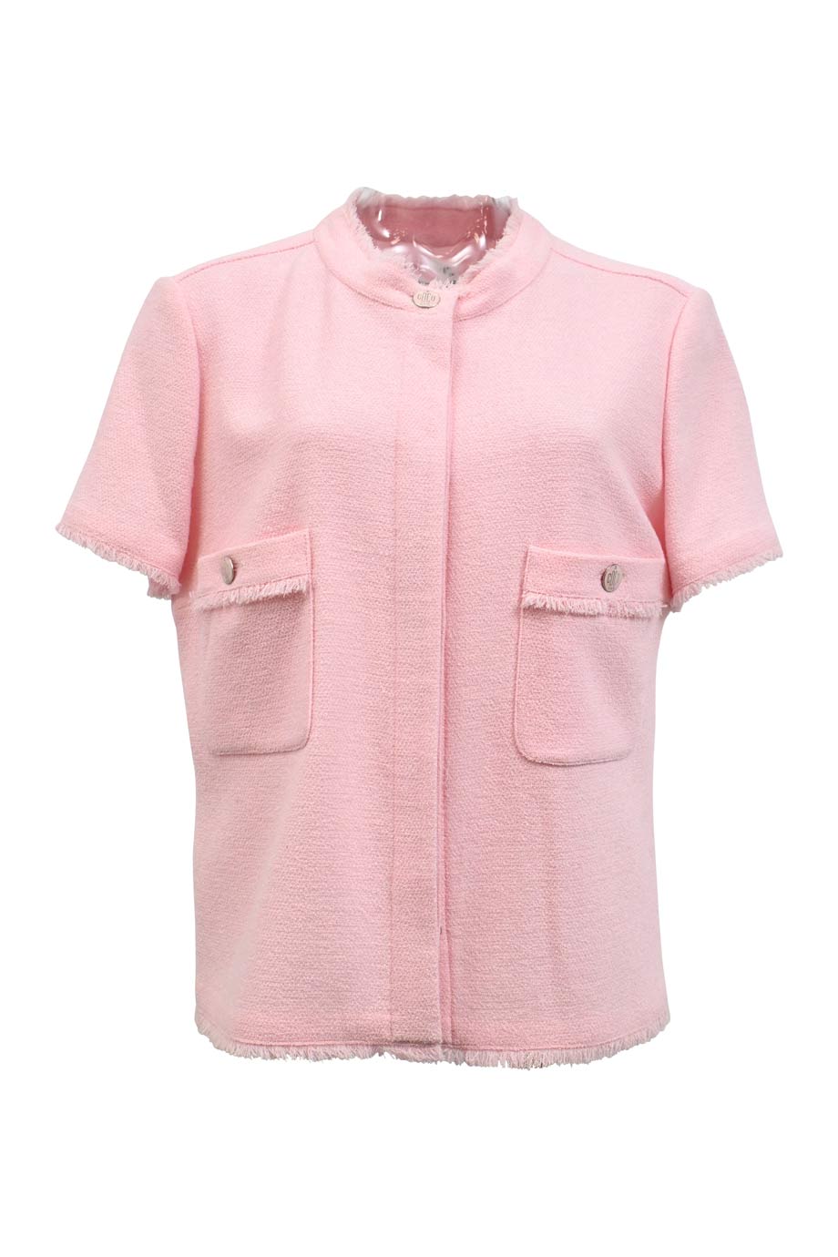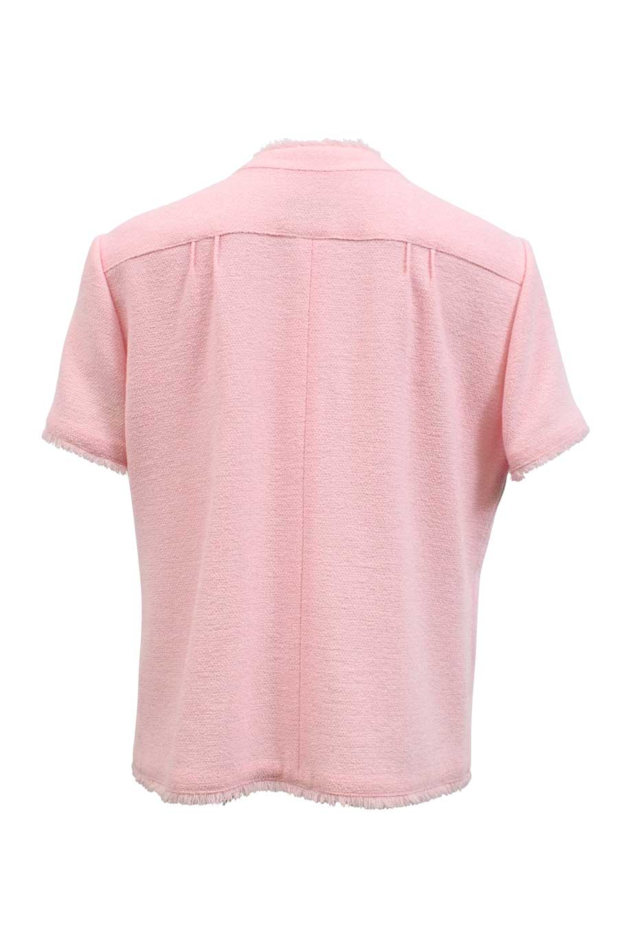 Pink wool interlock jersey knit spread collar polo