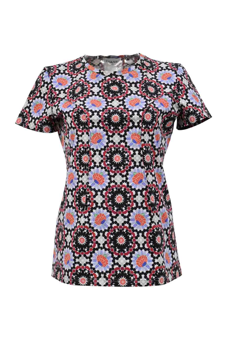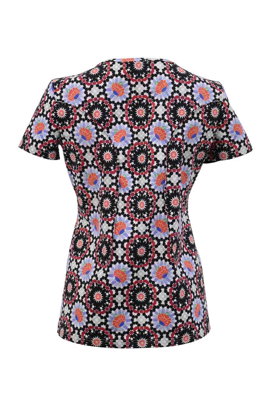 Multi-colour paneled silk-blend abstract print half-button flutter sleeve swing-style tunic top