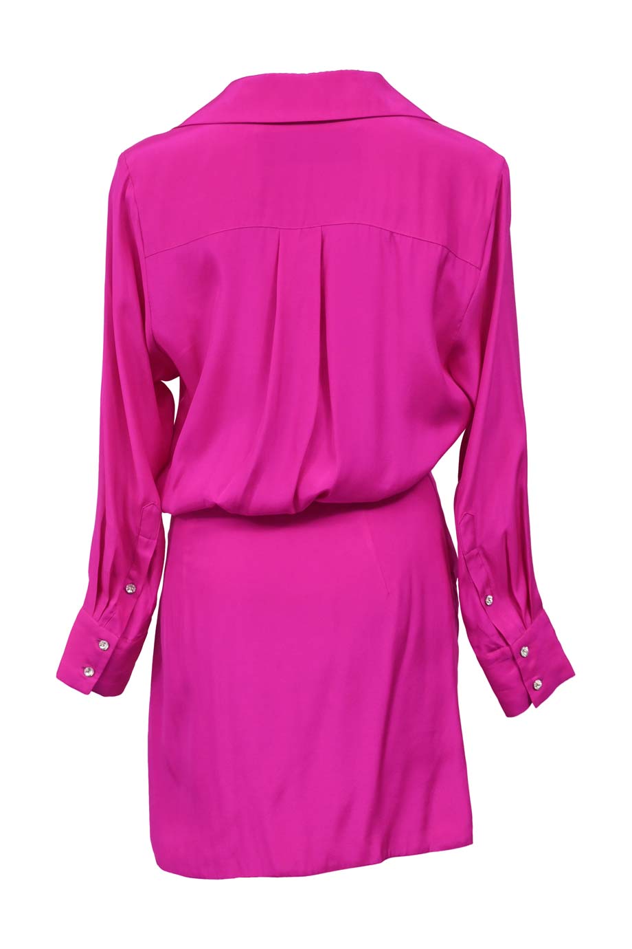 Magenta cotton bouclé tweed single breasted spread collar safari-style tailored jacket with concealed front fastening
