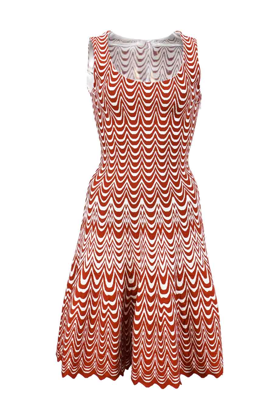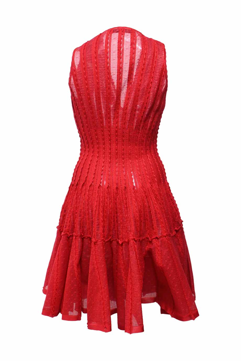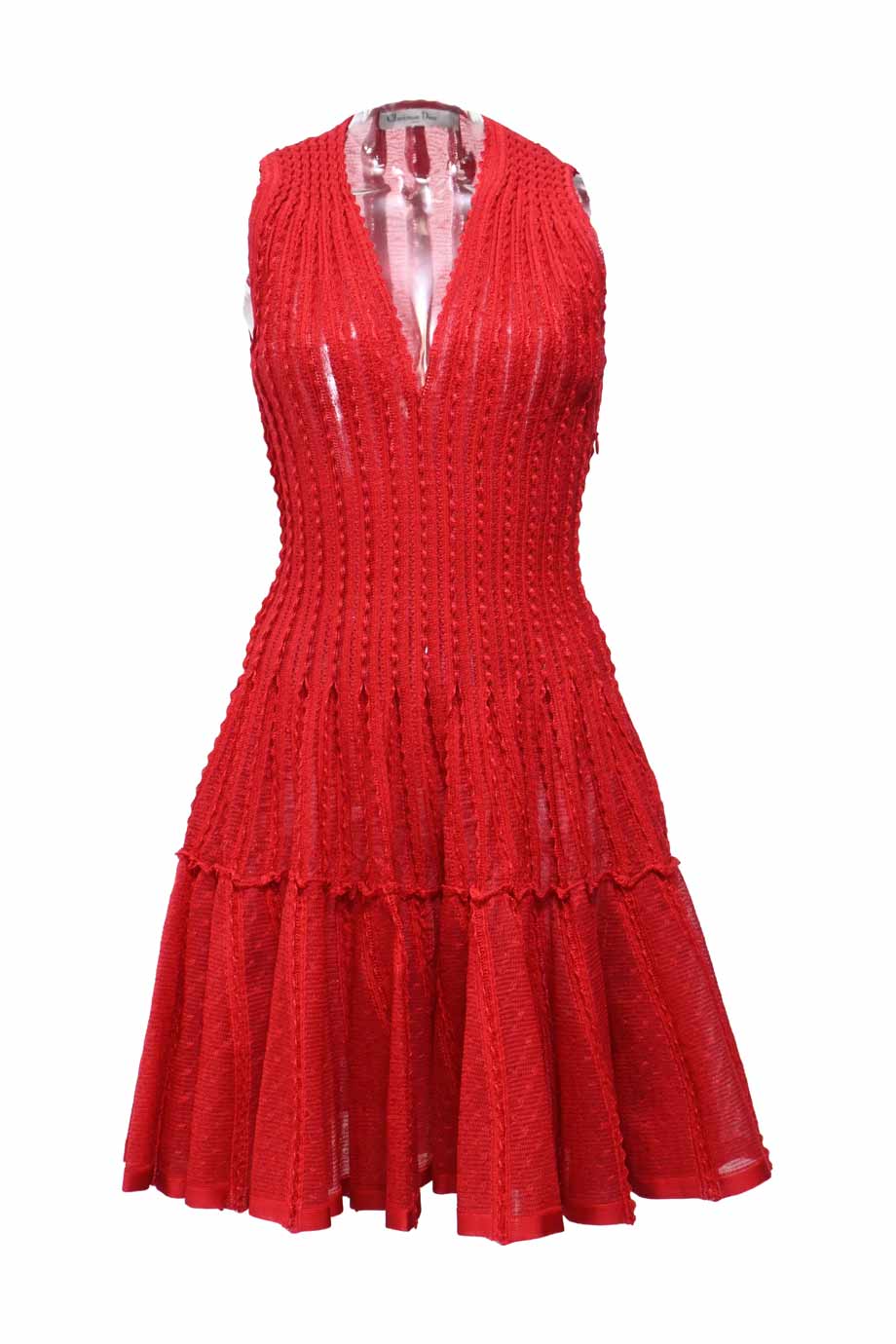 Red viscose-blend bouclé knit cap sleeve sheath dress