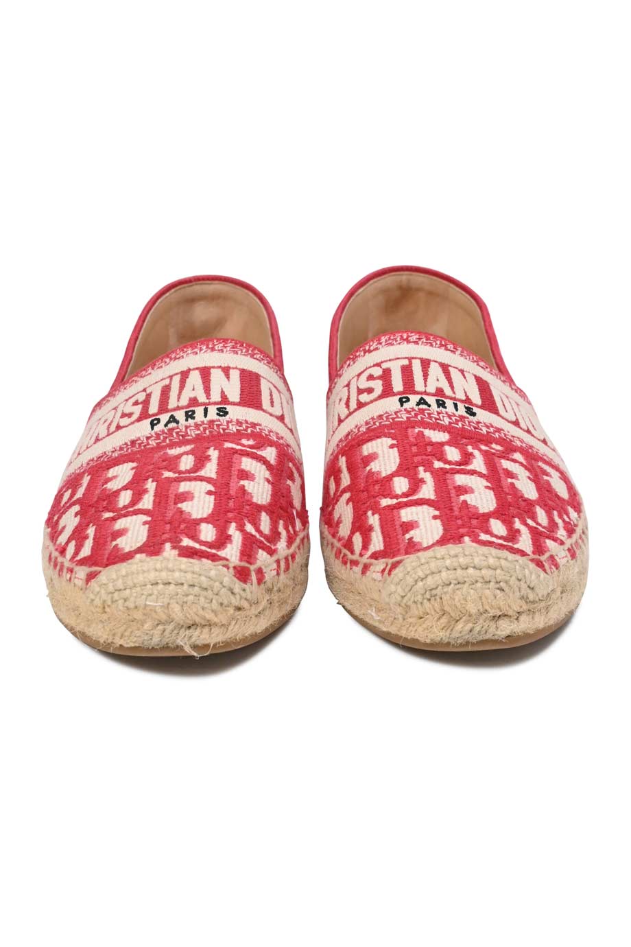 Red and navy fabric bouclé digi-print pointed-toe pumps