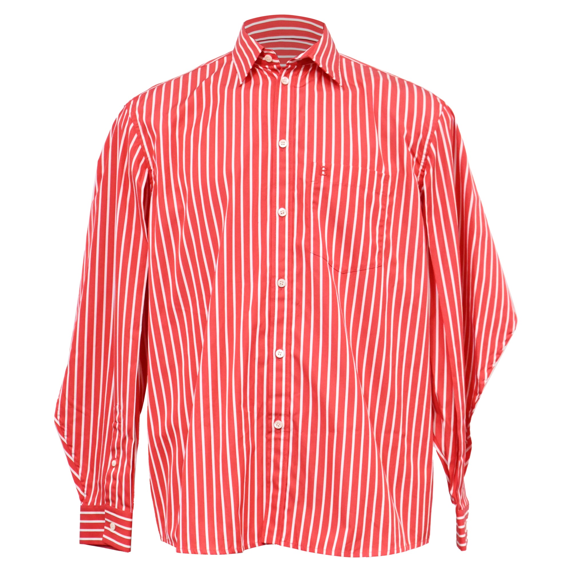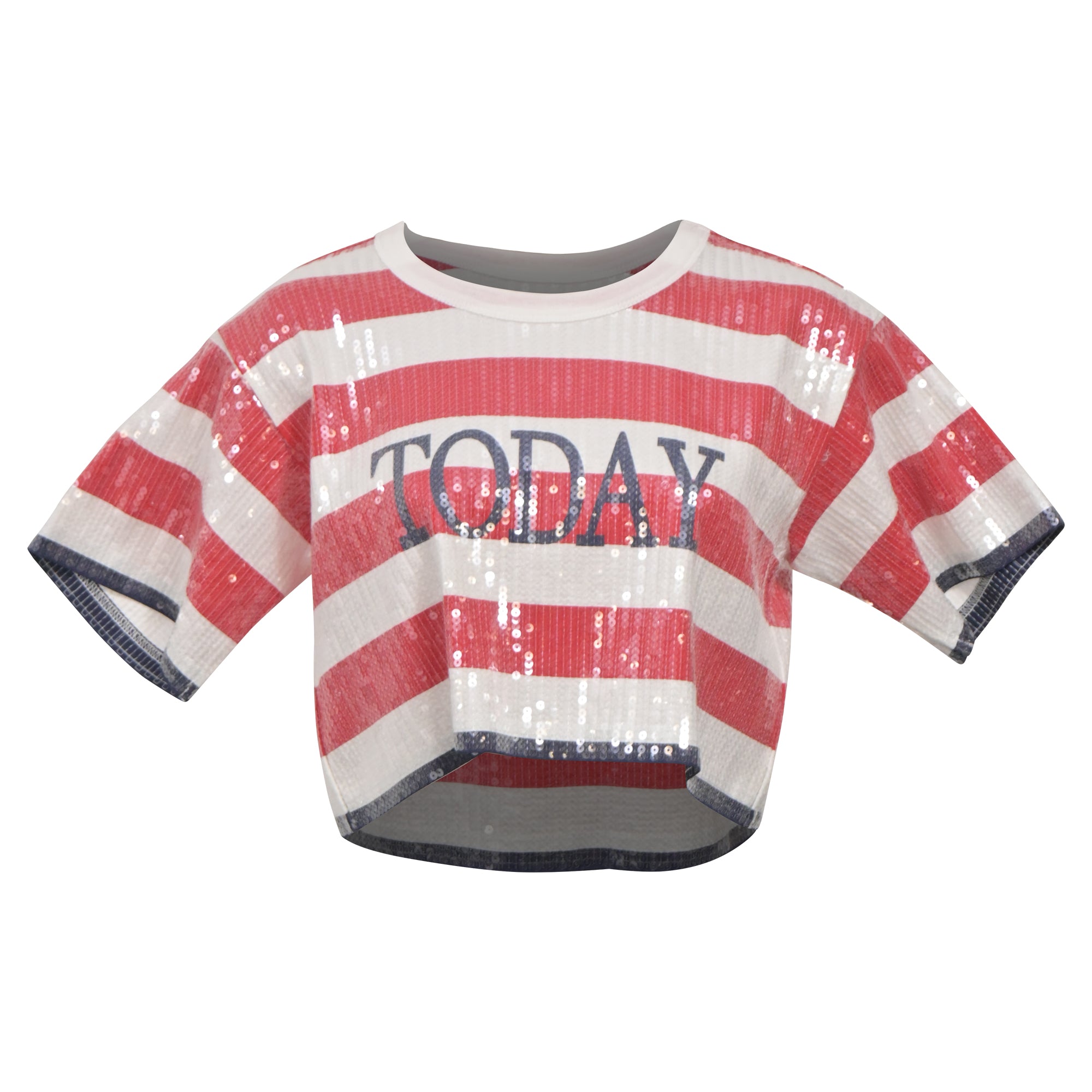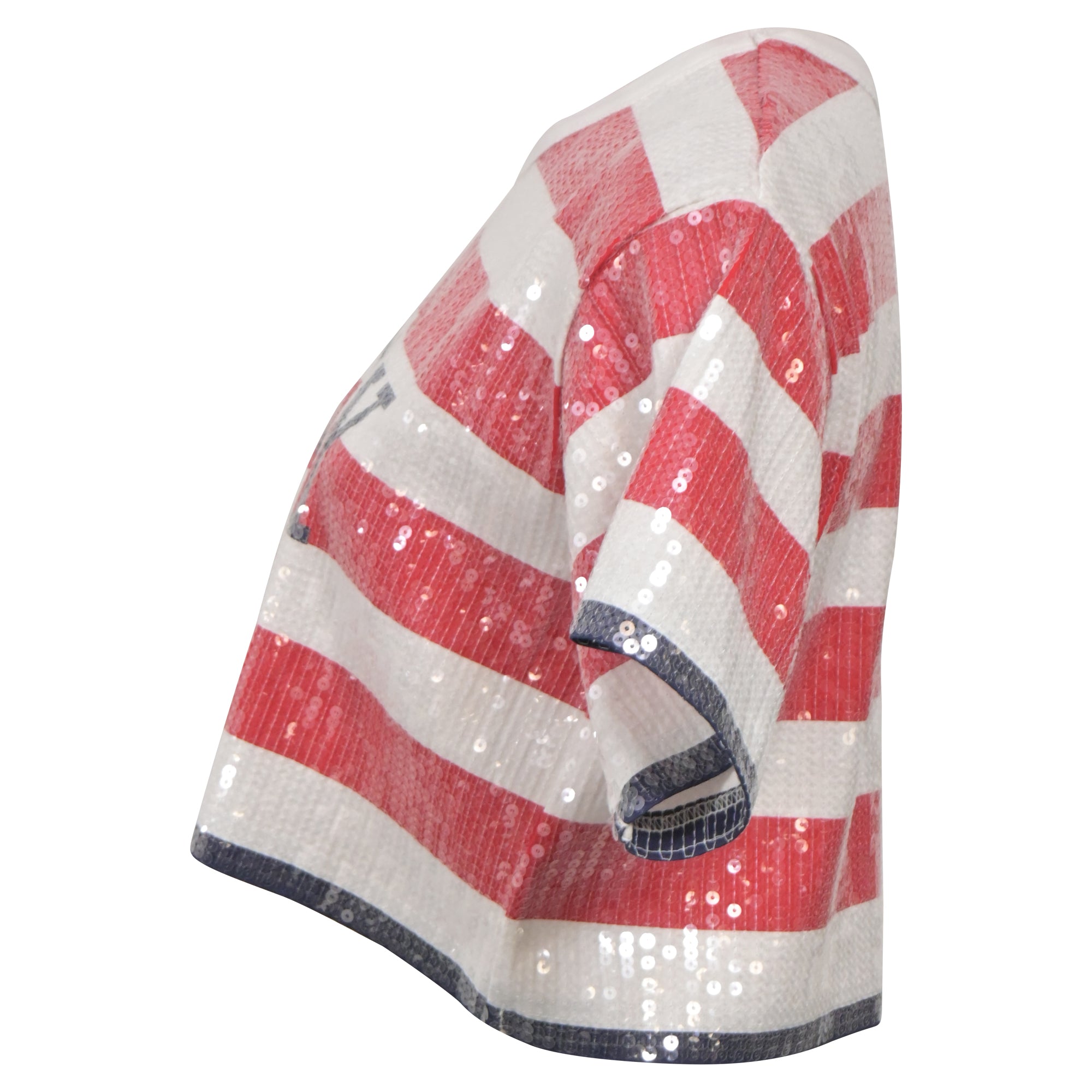 Red fully-fashioned rayon-blend stripe jersey knit pullover half sleeve top