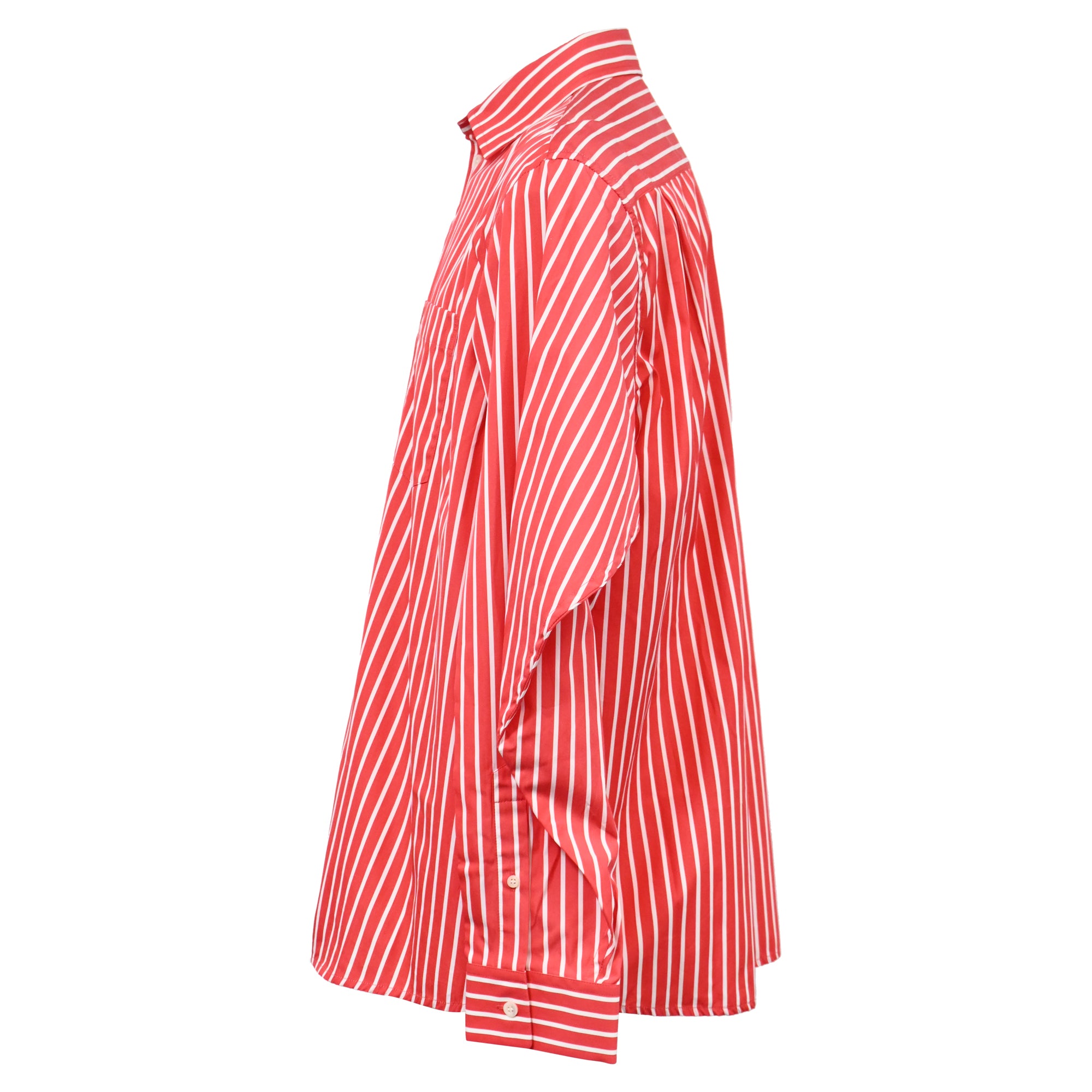Coral red virgin wool floor-grazing Oxford button-front maxi shirt dress with vented sides