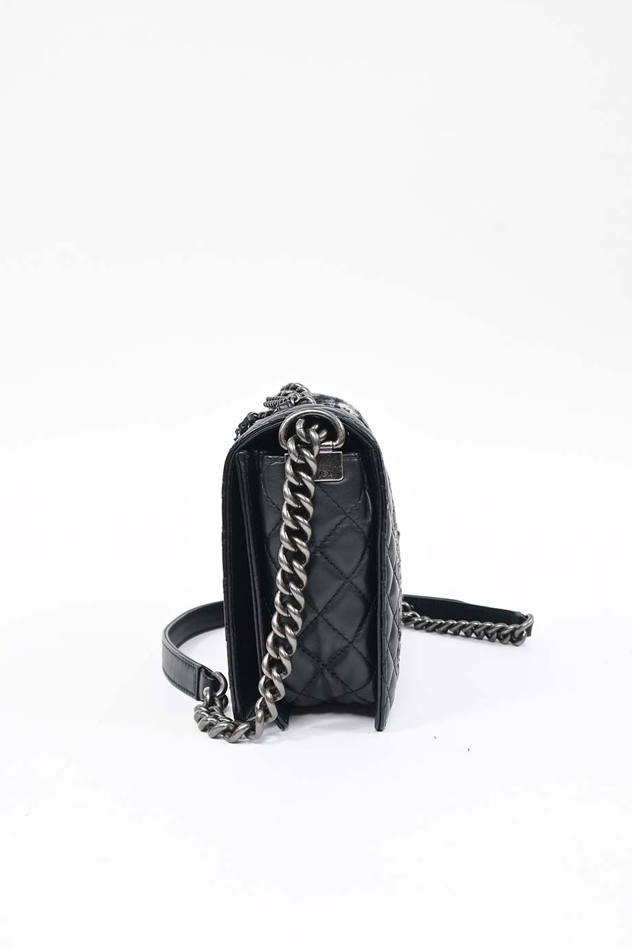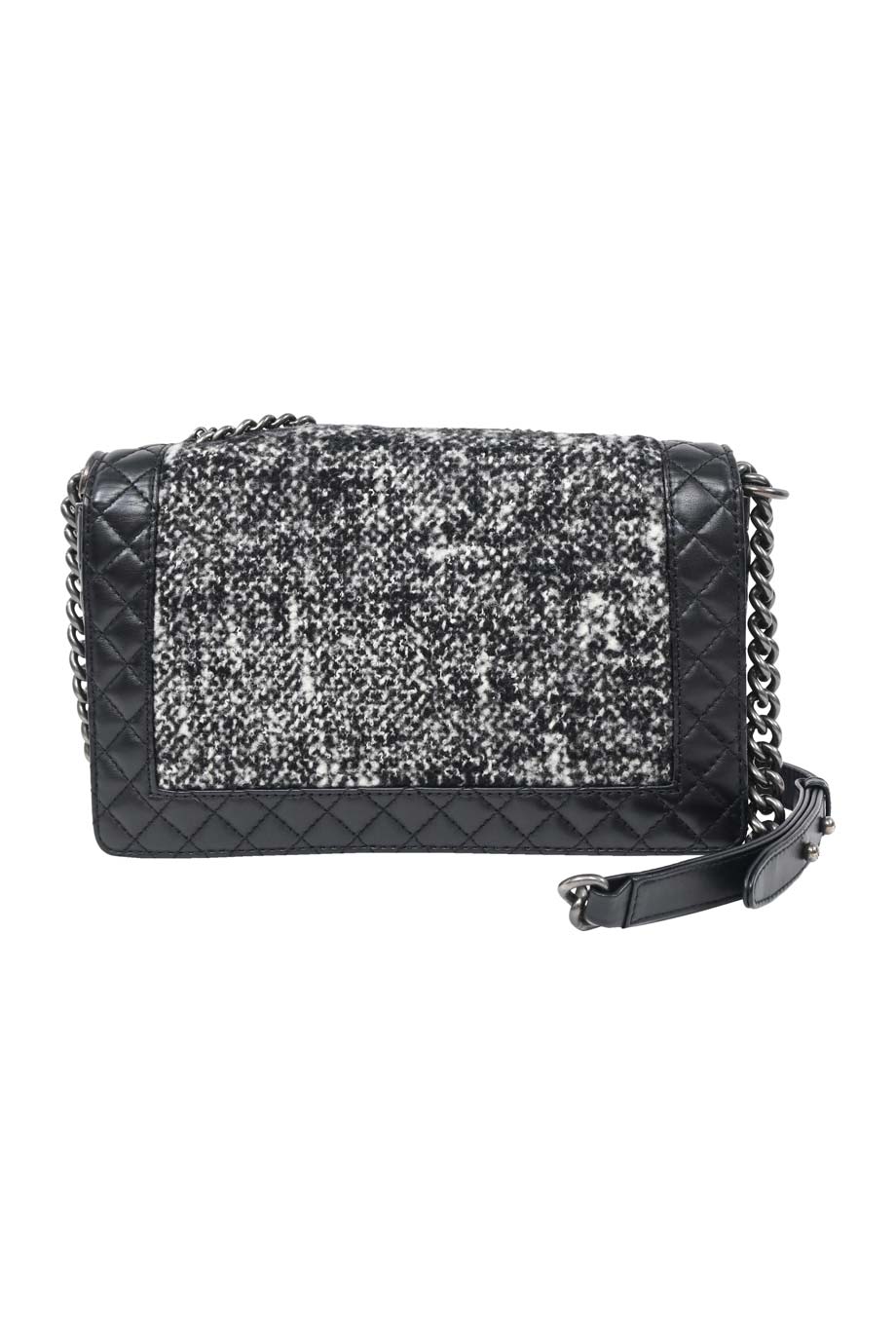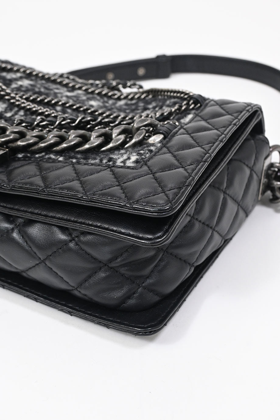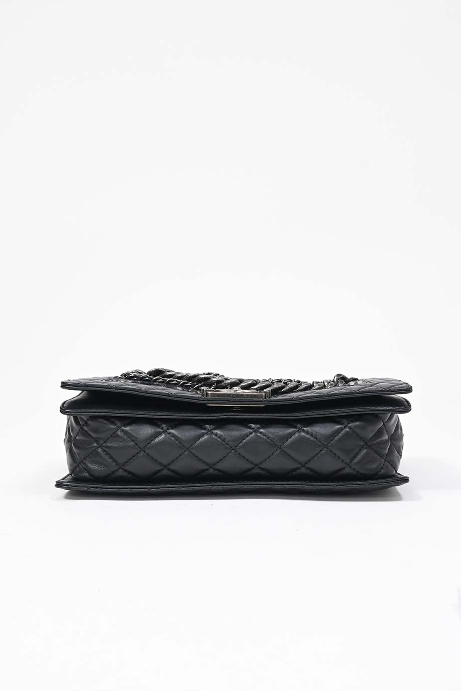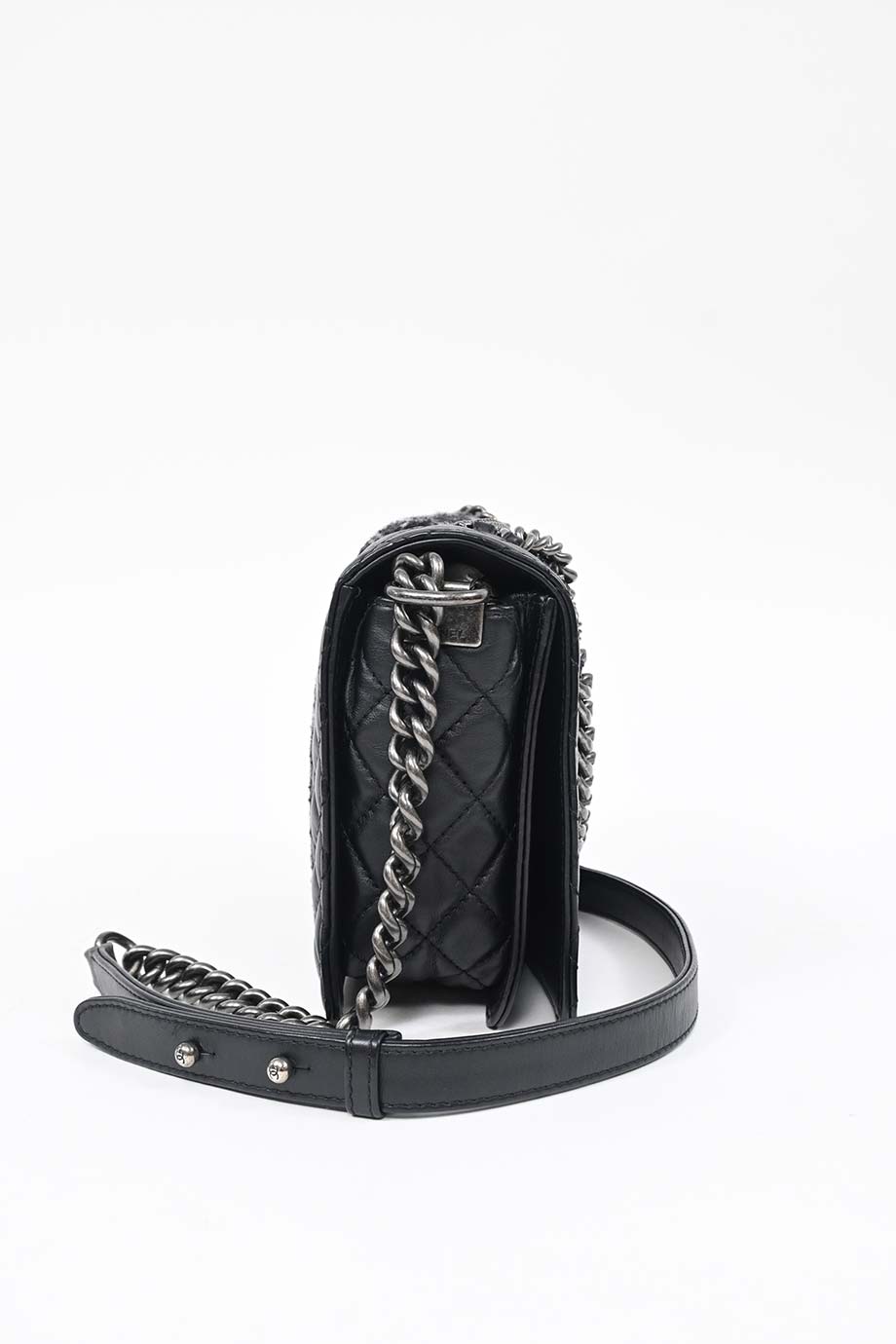 Adjustable sliding chain-link strap with leather shoulder pad.