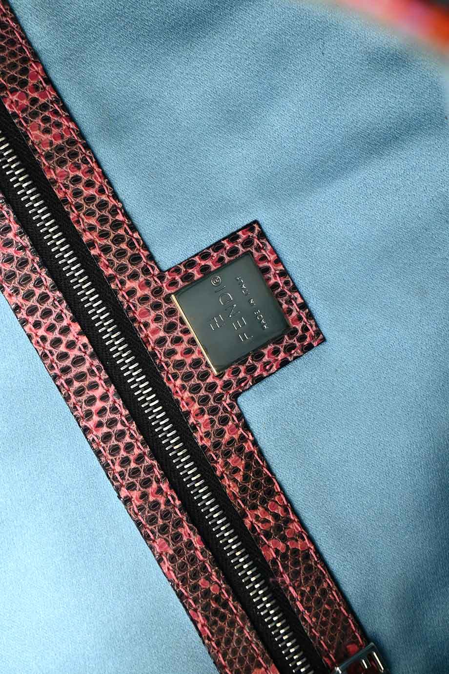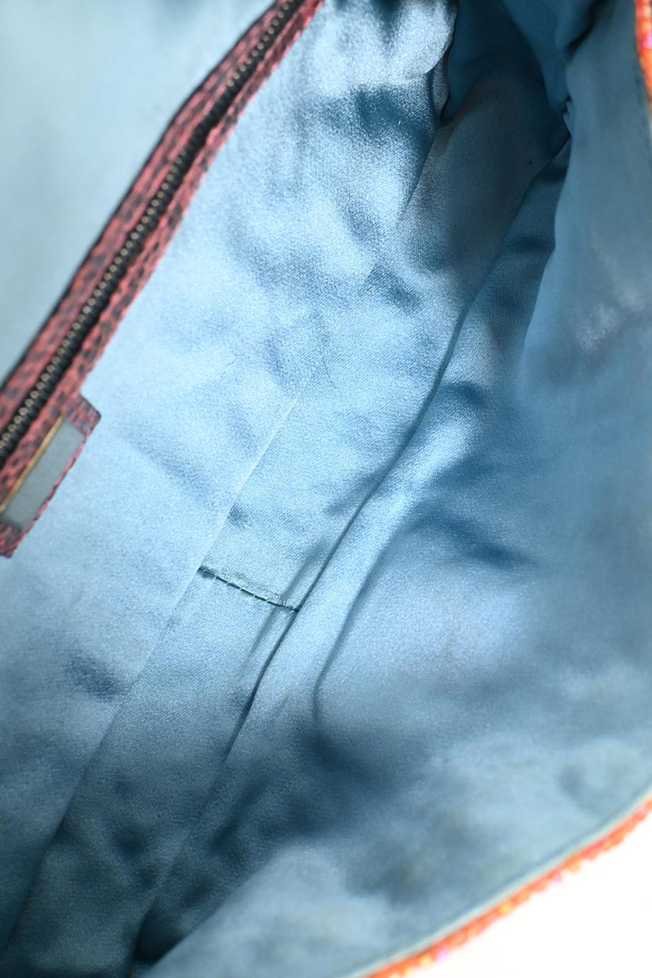 Satin lining with interior zip pocket.